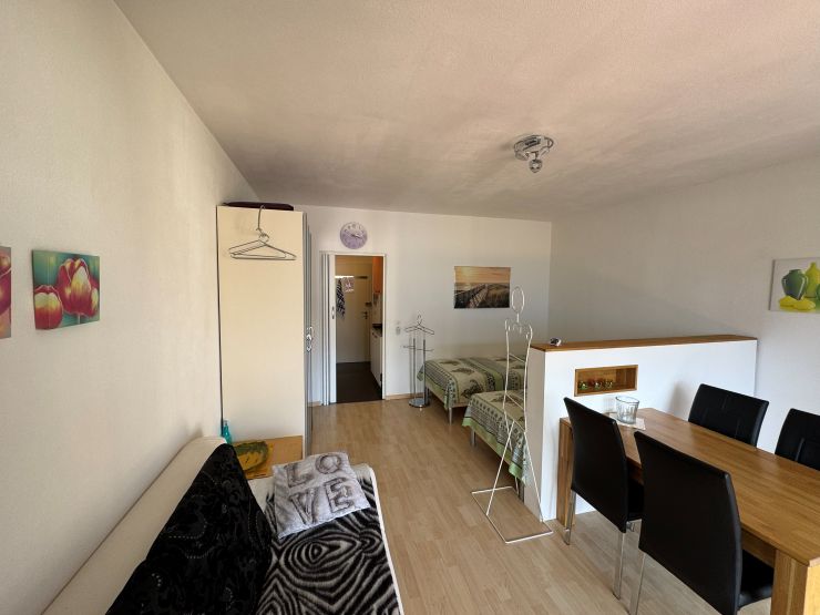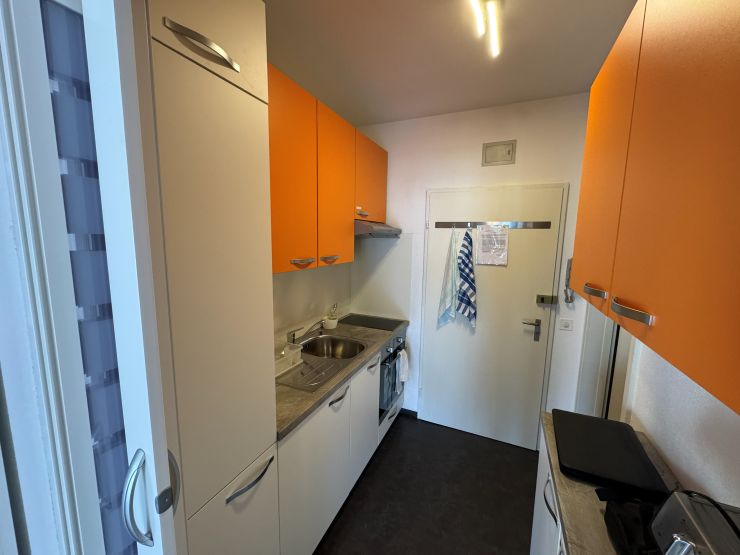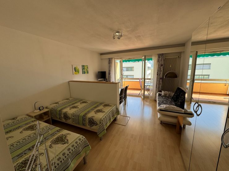 Die Wohnfläche beträgt ca. 31 qm + 7 qm Balkon und besteht aus einem Raum auf der Südseite, einem Eingang mit Kochnische, Badezimmer. Vor dem Wohnzimmer befindet sich ein grosser Balkon. Die Wohnung liegt im 3. Stock des Eingangs an der Via Verbano 10.